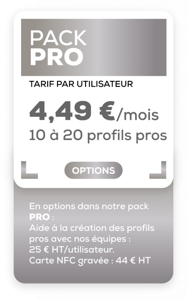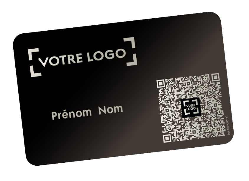 Un modèle unique, en métal noir et gravure laser recto qui ouvre votre profil pro en un simple passage sur le smartphone de votre contact.